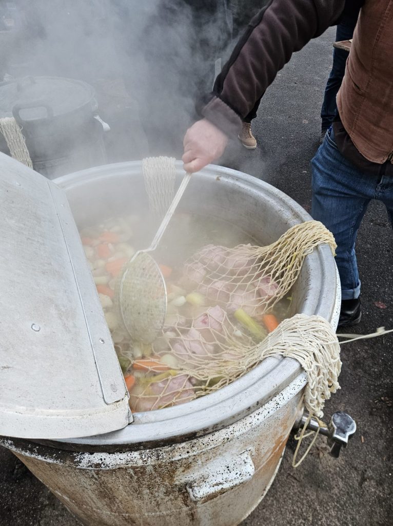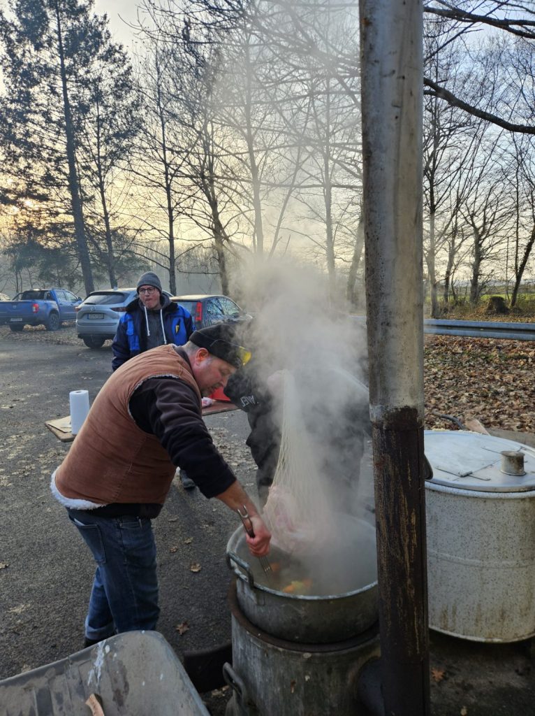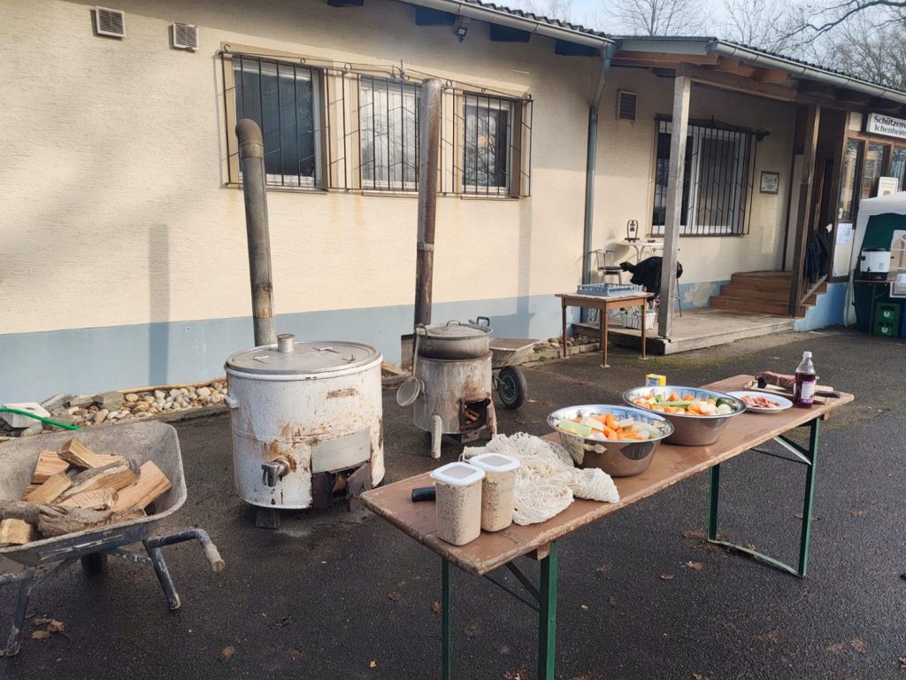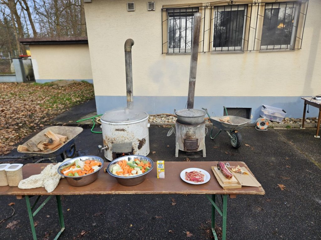 Bei passendem kalten, aber trockenem Wetter wurde am 24.01.2026 wieder groß am Hofweg 11 aufgebaut. Zelte und Bierzeltgarnituren aufgestellt, Feuerschalen und die Feuerstelle angeheizt und viele Getränke bereitgestellt. Und dieses Jahr gab es ein ganz besonderes Highlight. Unser Sportleiter Alexander Irslinger hat das, seit Jahren vermisste und doch bewährte, Kesselfleischessen in Ichene wieder aufleben lassen. Ein Stück Tradition hat somit wieder zurück zum Schützenhaus gefunden, welche wir mit Rund 30 Teilnehmenden feiern durften.