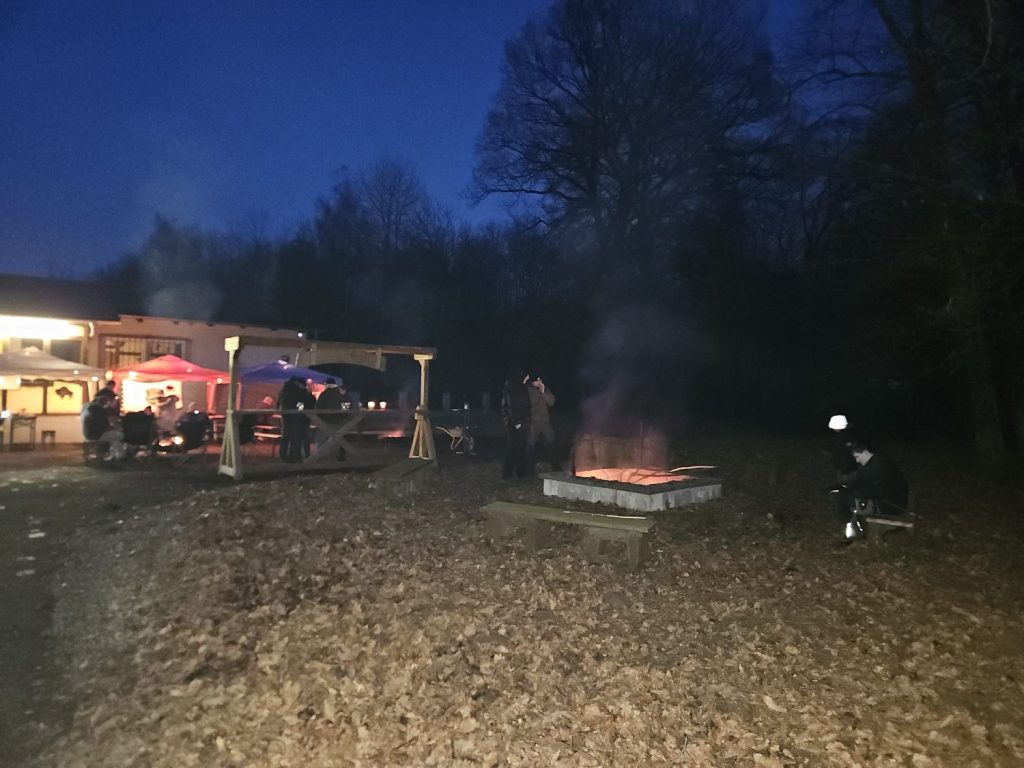 Das Fass war angestochen, der Met und der Sauerkraut warm und kiloweise Schweinebauch, -Rippchen und -Bäckchen wurden im Sud der Kessel versenkt. Es wurde reichlich und gut gegessen, viele nette und lustige Gespräche geführt und einfach das Leben in Ichene genossen. Die Feuerstellen sind immer warm gehalten worden und die Getränke stets kühl geblieben. Wieder ein wunderbarer Abend, um die Vereinskameradschaft zu pflegen und unsere Arme wieder gegenüber unseren Gästen zu öffnen.