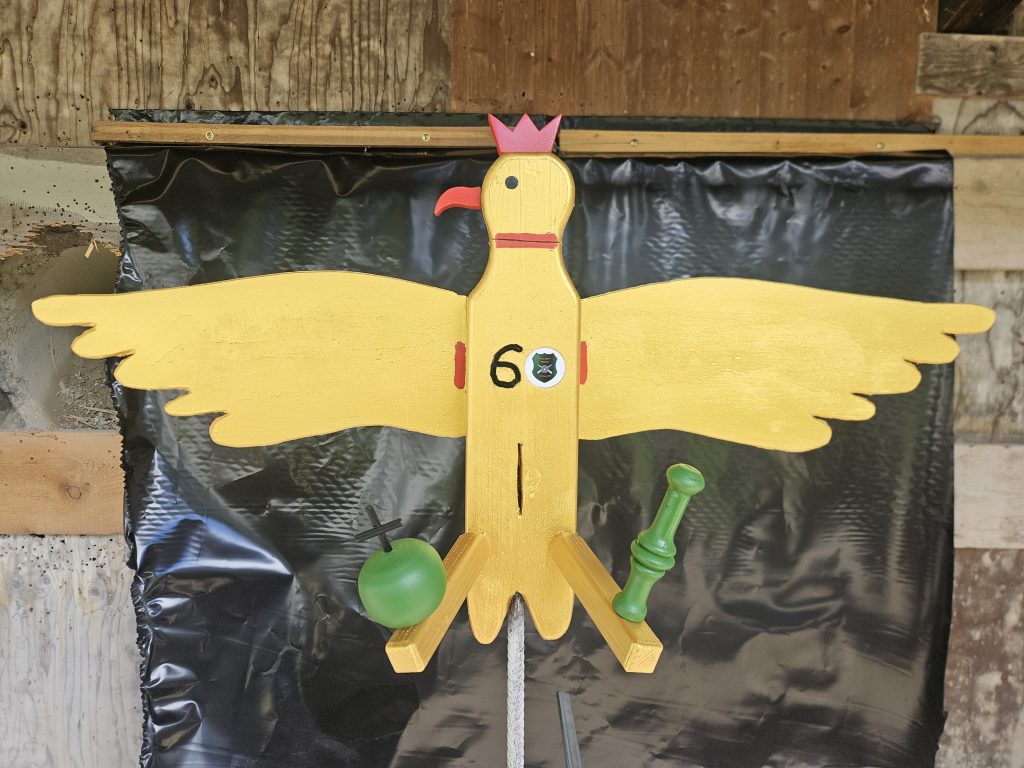 Es dauerte nicht lange und schon konnte Michael Oehler nach dem 16. Schuss dem Vogel die Krone von seinem Kopf schießen. Nun war das Zepter fällig. Mit dem 68. Schuss hat Jan Braun den Abschuss für sich behaupten können. Und nun ging es ganz schnell. Nur ganze drei Schüsse später hat Günter Schnebel dem Vogel, mit dem 71. Schuss, den Apfel aus der Kralle geschossen. Weiter ging es mit dem rechten Flügel. Nach 117 Schüssen ist er dann auch gefallen. Unser Schützenkönig aus dem Jahr 2023 Roland Becht hat ihn zu Fall gebracht. Danach wurde auf den linken Flügel geschossen. Und er wollte einfach nicht fallen. Erst nach dem 204. Schuss lag er auf dem Boden. Der Schütze war unser Newcomer Phillipp Irslinger. Zum ersten Mal durfte er beim Königsvogelschießen mitmachen und konnte direkt schon einen Abschuss verbuchen. An dieser Stelle an dich persönlich unseren größten Respekt, herzlichen Glückwunsch und weiterhin „Gut Schuss“. Nun folgte ein ziemlicher Kampf um den Kopf. Nach dem der Kopf gespalten wurde und nur noch die linke Seite auf dem Rumpf gesessen hat, konnte Florian Strauß mit dem 265. Schuss den Vogel komplett köpfen und bekam somit den Abschuss zugeschrieben. Das heißt, es folgte der Endspurt auf dem Rumpf. Nach einigen Schüssen wurde der Rumpf, wie vorher der Kopf, gespalten und wieder fiel nur die rechte Seite zu Boden. Jedoch muss der Vogel komplett fallen. Es entbrannte ein harter Kampf, in dem der Vogel gleich zweimal noch die Stange nach unten rutschte. Günter Schnebel (2. Ritter) schoss, dann schoss Roland Becht (1. Ritter), aber der Vogel wollte nicht fallen. Jürgen Kleis nahm letztendlich das Gewehr und schoss den Vogel im zweiten Versuch mit dem 455. Schuss von der Stange. Ichenheim hatte somit einen neuen König!