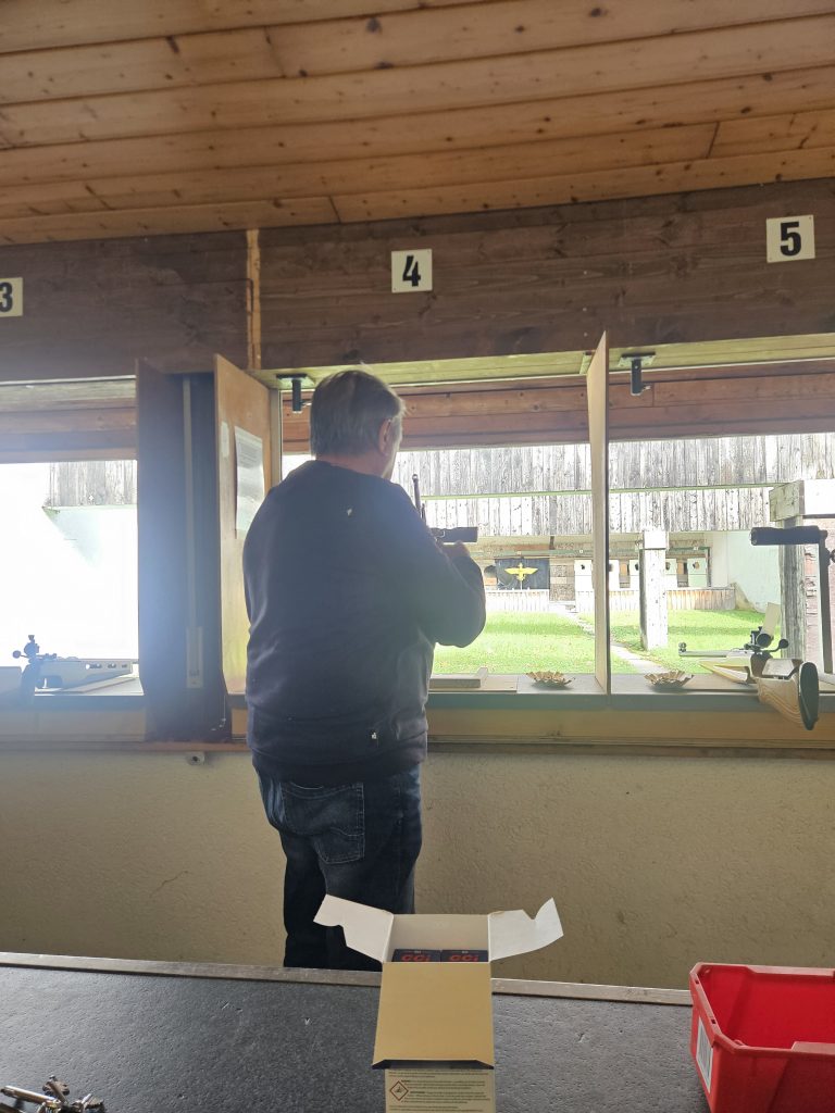 Um 14:15 Uhr begrüßte unser Oberschützenmeister Roland König alle anwesenden Mitglieder und Besucher. Eine besondere Begrüßung galt unserem noch amtierenden König Hugo Roth, der aber wild entschlossen war, seinen Thron zu verteidigen. Nach Erklärung des Ablaufes, der Schussreihenfolge und Unterweisung in die Sicherheitsbestimmungen durfte unser König Hugo den ersten Schuss abgeben. Darauf folge der Schuss von unserem Oberschützenmeister und somit war das Königsvogelschießen offiziell eröffnet.