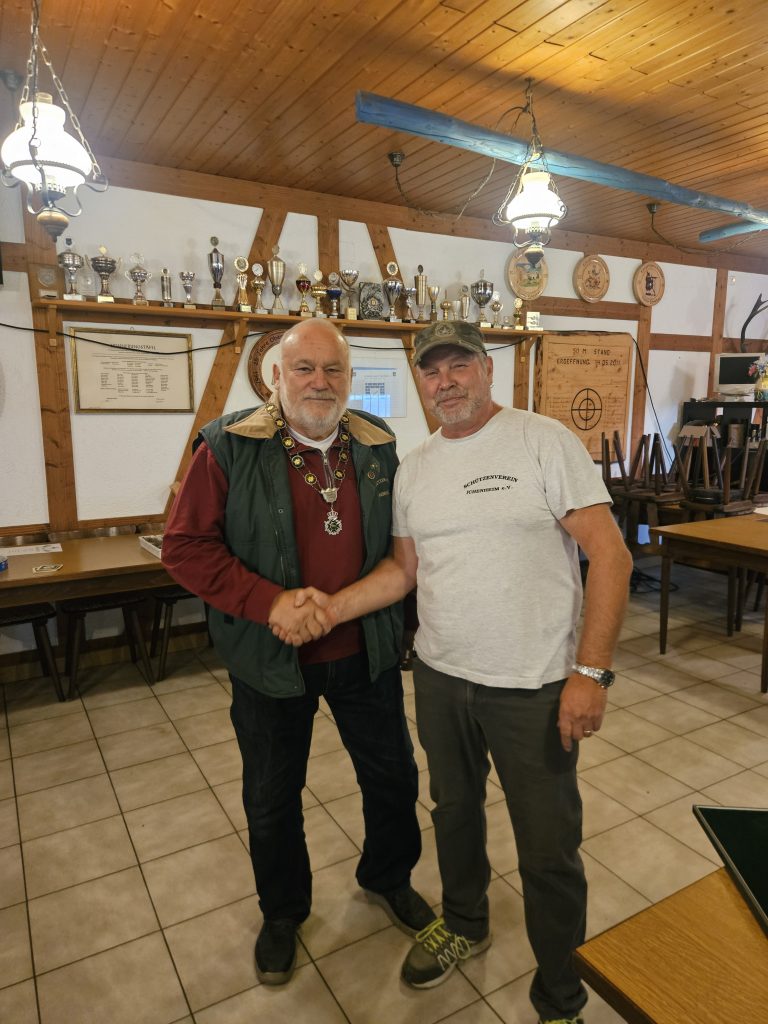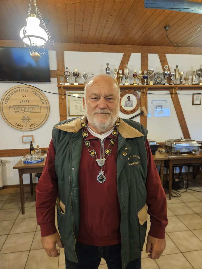 nach der Wiedergründung des Schützenverein Ichenheim e.V. im Jahre 1965 wird auch bei uns am Hofweg 11 das traditionelle Königsvogelschießen, mitsamt Proklamation des Schützenkönigs, abgehalten. Die Mitglieder des Vereins haben jährlich die große Chance, die Königswürde zu erringen und so trafen sich viele Mitglieder am 27.09.2025 zu diesem besonderen Tag im Schützenhaus ein. Das Ziel war klar, den Vogel wollten alle zu Fall bringen. Günter Schnebel hat ihn in diesem Jahr ganz in Gold gehalten und die „60“ prangte groß auf der stolzen Brust des Königsvogels.
