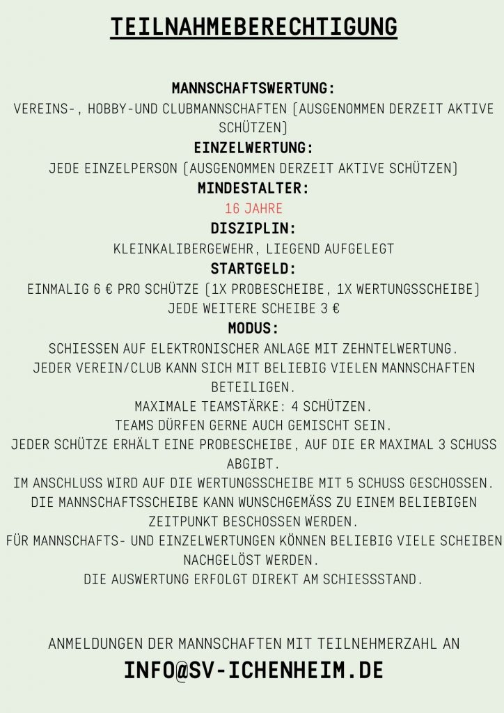 Also meldet euch gerne bei uns unter info@sv-ichenheim.de an und schießt bei uns den Ichener Meister aus!